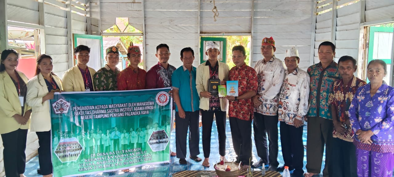 IAHNTPnews,- Tim Pengabdian Kepada Masyarakat Mandiri Badan Eksekutif Mahasiswa (BEM) Fakultas Dharma Sastra (FDS) Institut Agama Hindu Negeri Tampung Penyang (IAHN-TP) Palangka Raya telah sukses melaksanakan kegiatan pengabdian masyarakat di Desa Tangkoi, Kecamatan Kahayan Utara, Kabupaten Gunung Mas. Kegiatan ini berlangsung pada 17 hingga 20 Maret 2025 sebagai bagian dari Tri Dharma Perguruan Tinggi, khususnya dalam aspek pengabdian kepada masyarakat.