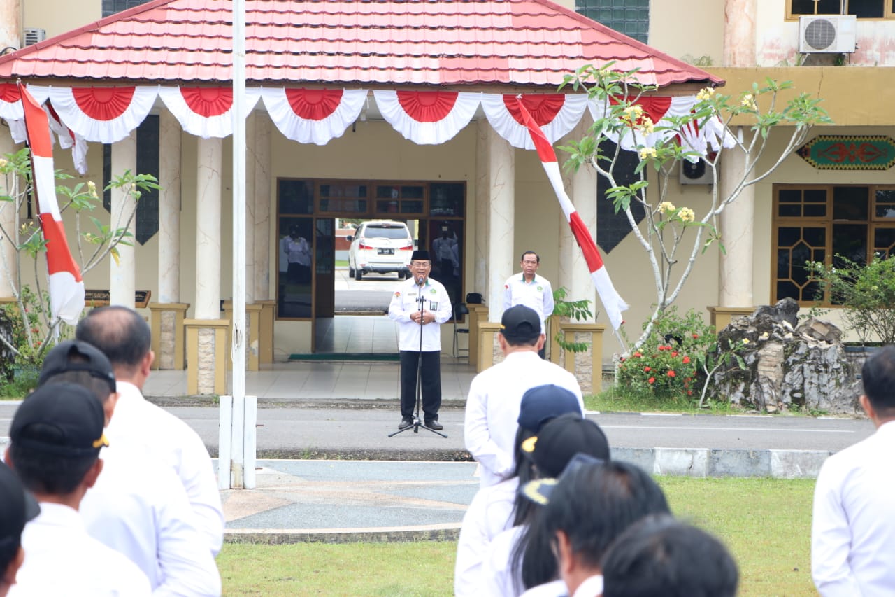 IAHNTPnews,- Institut Agama Hindu Negeri Tampung Penyang (IAHN-TP) Palangka Raya melaksanakan apel pagi yang diikuti seluruh Aparatur Sipil Negara (ASN) dan Tenaga Kontrak di lingkungan kampus. Bertindak sebagai pembina apel, Rektor IAHN-TP Dr. Mujiyono, S.Ag., M.Ag., menyampaikan sejumlah pesan penting, sekaligus mengucapkan Selamat Hari Raya Galungan kepada seluruh peserta apel. Senin (28/04)