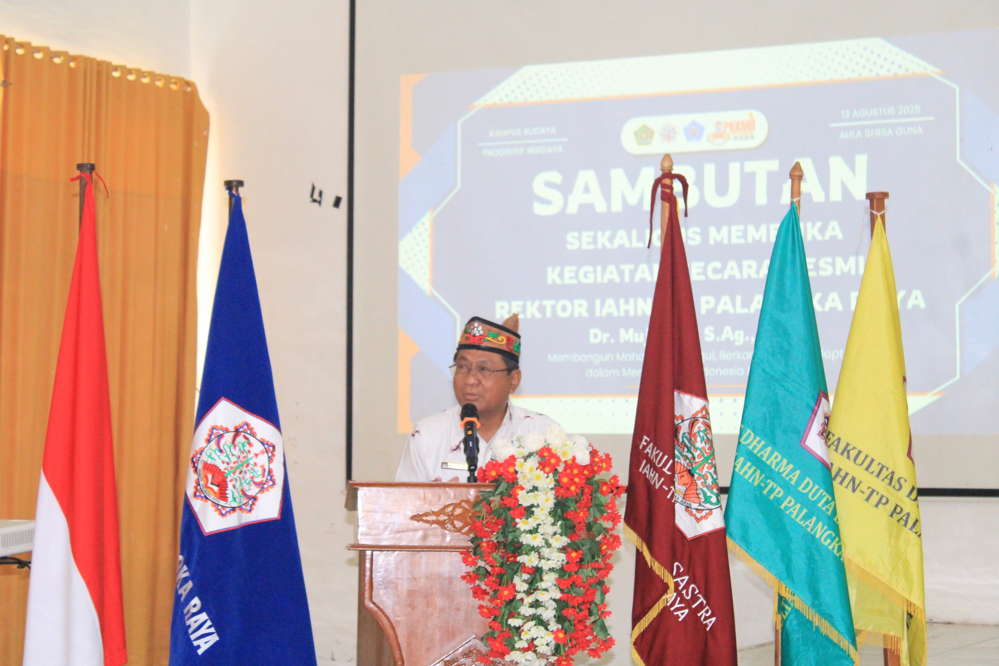 IAHNTPnews,- Institut Agama Negeri Tampung Penyang (IAHN-TP) Palangka Raya held the Opening Ceremony of the Introduction to Campus Life for New Students (PKKMB) Academic Year 2025/2026 at the Multipurpose Hall on Wednesday (13/8). This year’s event carried the theme “Building Excellent, Character-Driven, and Adaptive Students in Welcoming Golden Indonesia 2045.”
