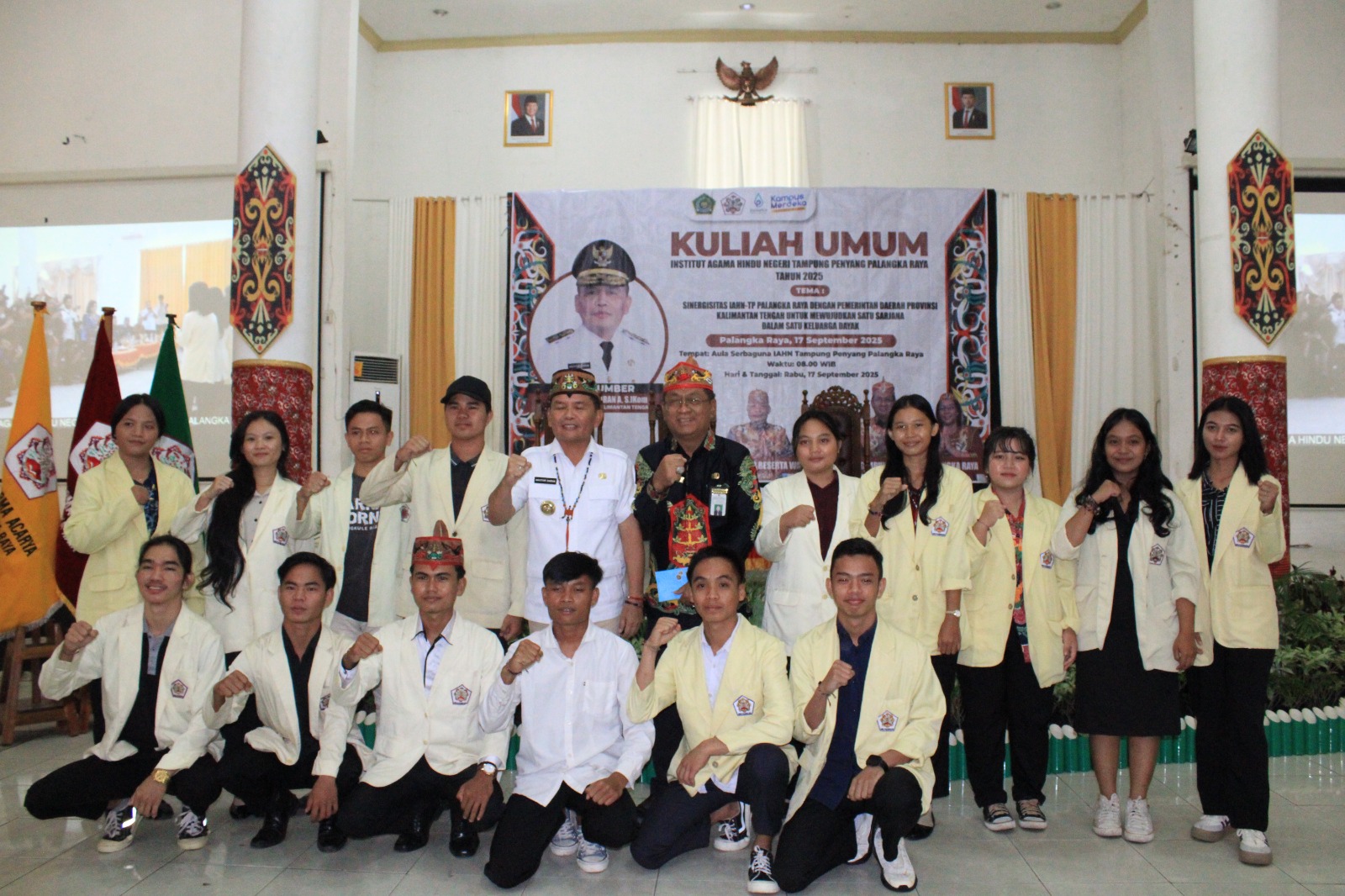IAHNTPnews,- Institut Agama Hindu Negeri Tampung Penyang (IAHN-TP) Palangka Raya held a public lecture featuring the Governor of Central Kalimantan, H. Agustiar Sabran, S.I.Kom., as the keynote speaker. The theme of the lecture, “Synergy Between IAHN-TP Palangka Raya and the Regional Government of Central Kalimantan in Achieving the Vision of One Dayak Bachelor per Family,” took place at the IAHN-TP Multipurpose Hall on Wednesday (17/9).