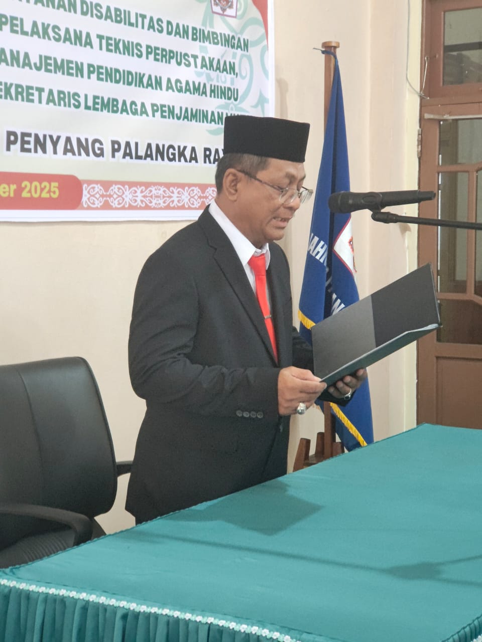 IAHNTP News,– Institut Agama Hindu Negeri Tampung Penyang (IAHN-TP) Palangka Raya held an inauguration and oath-taking ceremony for several newly appointed officials within the institution on Monday (22/9). The event, led directly by the Rector of IAHN-TP Palangka Raya, Dr. Mujiyono, S.Ag., M.Ag., took place in the meeting room on the second floor.