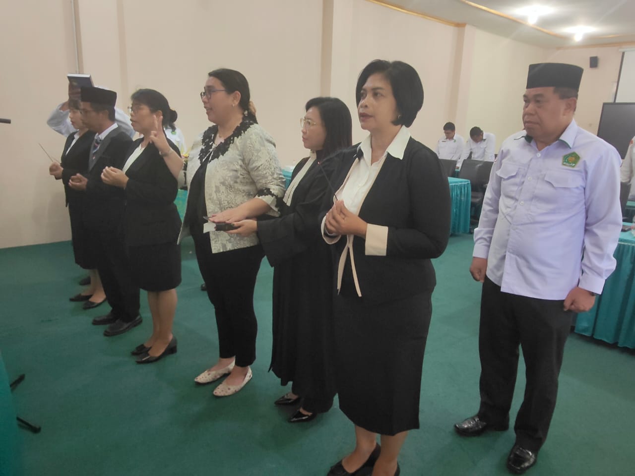 IAHNTP News,– Institut Agama Hindu Negeri Tampung Penyang (IAHN-TP) Palangka Raya held an inauguration and oath-taking ceremony for several newly appointed officials within the institution on Monday (22/9). The event, led directly by the Rector of IAHN-TP Palangka Raya, Dr. Mujiyono, S.Ag., M.Ag., took place in the meeting room on the second floor.