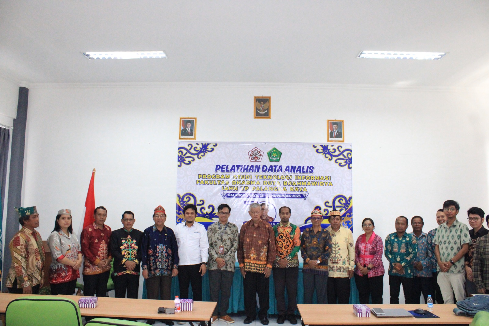 IAHNTPnews,- The Faculty of Dharma Duta and Brahma Widya (FDDBW) of Institut Agama Hindu Negeri Tampung Penyang (IAHN-TP) Palangka Raya, through the Information Technology Study Program, organized a Data Analyst Training program held for three days, 25–27 November 2025. The training took place in the FDDBW Meeting Room, 3rd Floor, on Tuesday (25/11), and was attended by faculty leaders and students of the Information Technology Study Program.