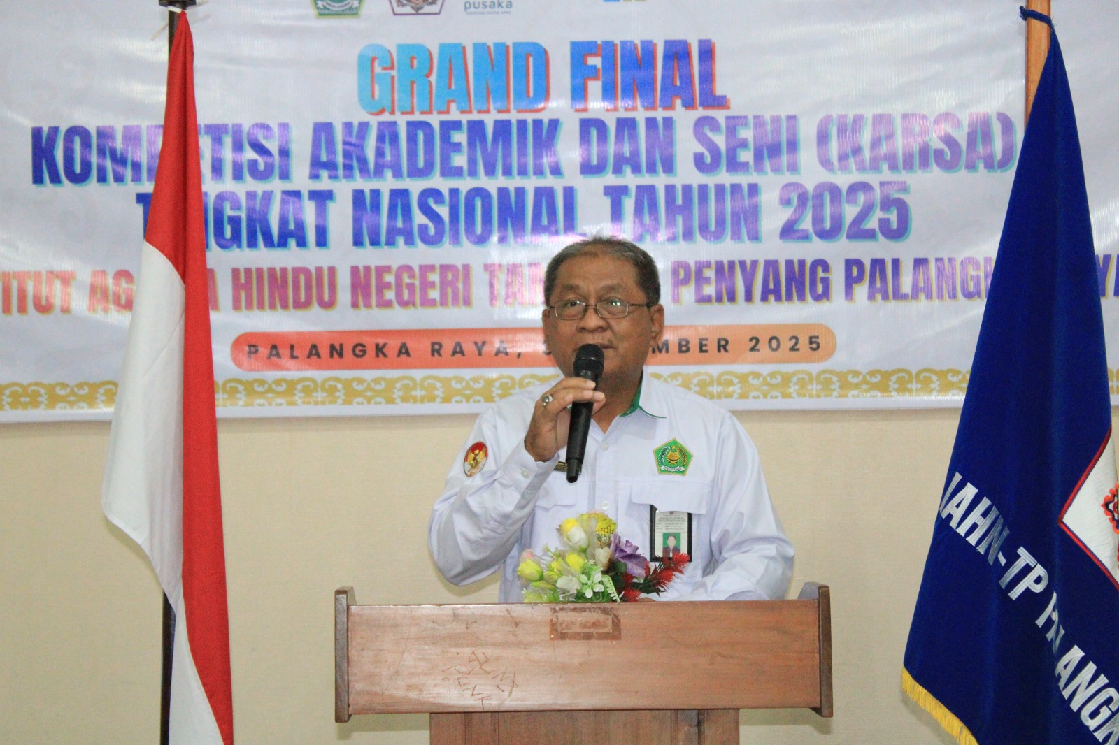 IAHNTPNews,– Institut Agama Hindu Negeri Tampung Penyang (IAHN-TP) Palangka Raya, through the Faculty of Dharma Acarya, held the Grand Final of the 2025 National Academic and Arts Competition (KARSA) on Tuesday (9/12), held in the Rectorate Meeting Room, 2nd Floor. The event was attended by university leaders, lecturers, and students, and was officially opened by the Rector of IAHN-TP, Dr. Mujiyono, S.Ag., M.Ag.