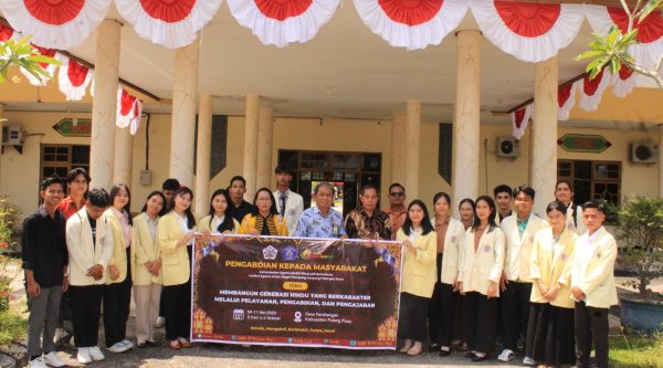 IAHNTPnews,- Institut Agama Hindu Negeri Tampung Penyang (IAHN-TP) Palangka Raya secara resmi melepas peserta kegiatan Pengabdian kepada Masyarakat dengan tema: “Membangun Generasi Hindu yang Berkarakter melalui Pelayanan, Pengabdian, dan Pengajaran.” Kegiatan ini dilaksanakan di Desa Parahangan, Kabupaten Pulang Pisau. Kamis (08/05) Acara pelepasan dihadiri langsung oleh Rektor IAHN-TP, Dr. Mujiyono, S.Ag., M.Ag., didampingi oleh Wakil Rektor Bidang Akademik dan Pengembangan Kelembagaan dan Kepala Biro Administrasi Umum, Keuangan dan Kepegawaian (AUAK)....Read More