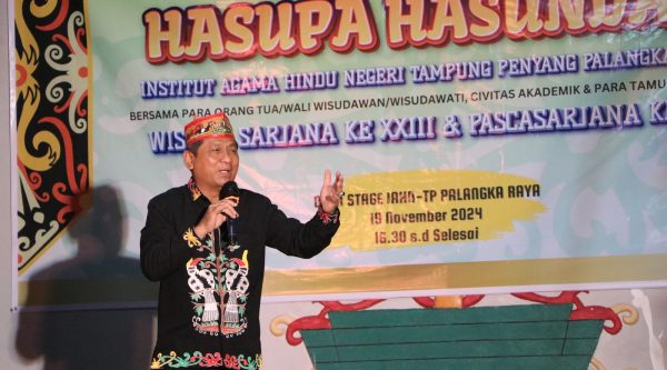 IAHNTPnews,- Institut Agama Hindu Negeri Tampung Penyang (IAHN TP) Palangka Raya menggelar acara Hasupa Hasundau, sebuah tradisi lokal yang dipadukan dengan prosesi pelepasan mahasiswa yang akan diwisuda. Acara ini dihadiri oleh Direktur Pendidikan Hindu Ditjen Bimas Hindu Kemenag RI, Bapak Dr. Trimo, S.Pd.,M.Pd yang didampingi oleh Rektor IAHN-TP Palangka Raya, Dr. Mujiyono, para wisudawan, orang tua/wali wisudawan, dan civitas akademika. Acara ini berlangsung di Open Stage IAHN-TP pada Selasa (19/11/2024)....Read More