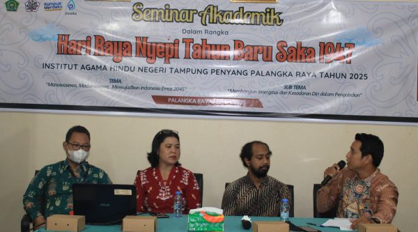 IAHNTPnews,- Institut Agama Hindu Negeri Tampung Penyang (IAHN-TP) Palangka Raya menyelenggarakan Seminar Akademik dalam rangka peringatan Hari Raya Nyepi Tahun Baru Saka 1947, dengan mengangkat tema: “Manawasewa, Madawasewa, Mewujudkan Indonesia Emas 2045” serta sub tema “Membangun Sinergitas dan Kesadaran Diri dalam Pengabdian”. Kegiatan ini dilaksanakan di Ruang Rapat Lantai II Gedung Rektorat dan dihadiri oleh Kepala Bagian Umum dan Layanan Akademik, Sapturie, S.Ag.,M.A.P dan Kepala Sub Bagian Layanan serta diikuti...Read More