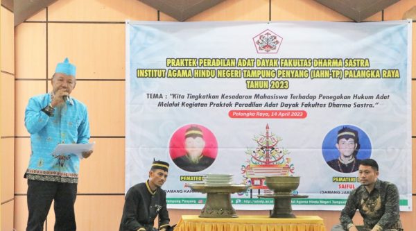 IAHN TPnews,- Fakultas Dharma Sastra Institut Agama Hindu Negeri Tampung Penyang Palangka Raya melaksanakan kegiatan Praktek Peradilan Adat Dayak bertempat di Aula Student Center Lantai 3, Jum’at 14 April 2023. Praktek Peradilan Adat Dayak mengangkat sebuah tema “Kita Tingkatkan Kesadaran Mahasiswa Terhadap Penegakan Hukum Adat Melalui Kegiatan Praktek Peradilan Adat Dayak Fakultas Dharma Sastra”. Dalam laporan Ketua Panitia Armadiansyah, S.Ag.,SH.,MH. mengatakan bahwa kegiatan diikuti oleh 62 orang yang terdiri dari...Read More
