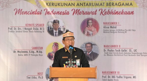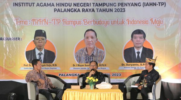 IAHN TPnews,- Institut Agama Hindu Negeri Tampung Penyang (IAHN-TP) Palangka Raya menggelar Dialog Nasional Kerukunan Antarumat Beragama dengan mengusung tema “Mencintai Indonesia Merawat Kebhinekaan”, Kamis (06/04/2023) bertempat di Aula Serbaguna IAHN-TP Palangka Raya. Rektor IAHN-TP Palangka Raya dalam laporannya mengatakan dilaksanakannya kegiatan Dialog Nasional Kerukunan Antarumat Beragama ini merupakan rangkaian dari Dies Natalis ke-5 IAHN-TP Palangka Raya yang dilaksanakan untuk menjalin silaturrahmi antarumat beragama di Kalimantan Tengah, selain itu untuk...Read More