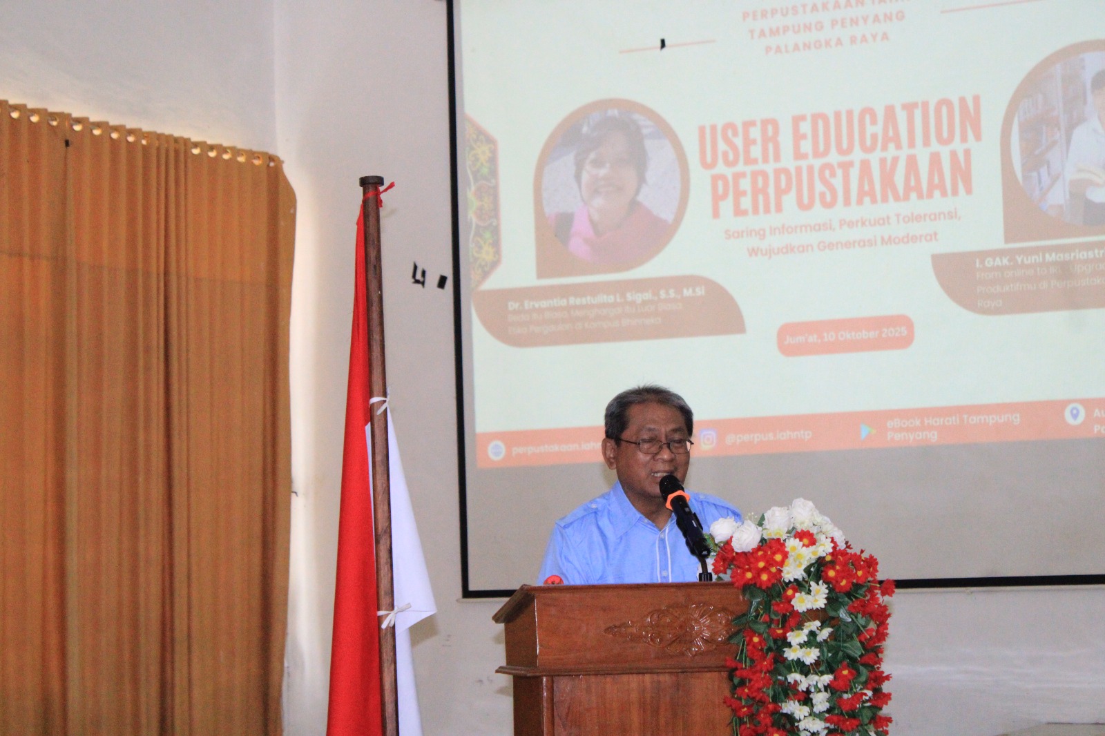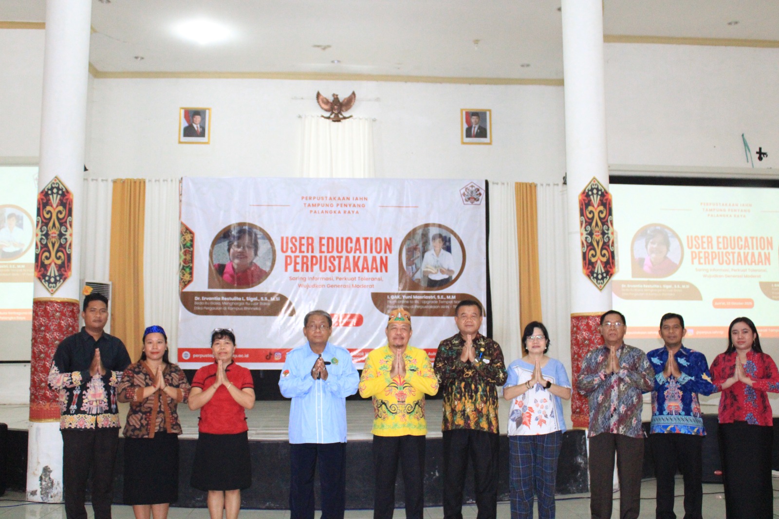 IAHNTPnews,- Institut Agama Hindu Negeri Tampung Penyang (IAHN-TP) Palangka Raya melalui Unit Pelaksana Teknis (UPT) Perpustakaan melaksanakan kegiatan User Education dengan tema “Saring Informasi, Perkuat Toleransi, Wujudkan Generasi Moderat”. Kegiatan ini berlangsung di Aula Serbaguna IAHN-TP Palangka Raya pada Jumat (10/10), dan dihadiri oleh Rektor IAHN-TP Dr. Mujiyono, S.Ag., M.Ag., Wakil Rektor III, para Dekan , serta mahasiswa.